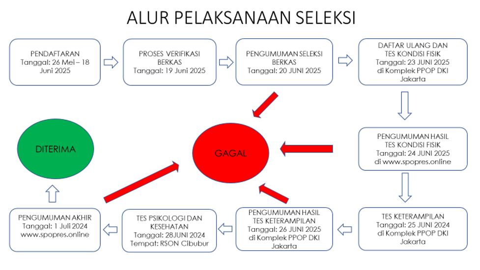 | 3 | Pengambilan Nomor Tes dan Pelaksanaan Tes Fisik | 23 Juni 2025 | Komplek PPOP DKI Jakarta |
