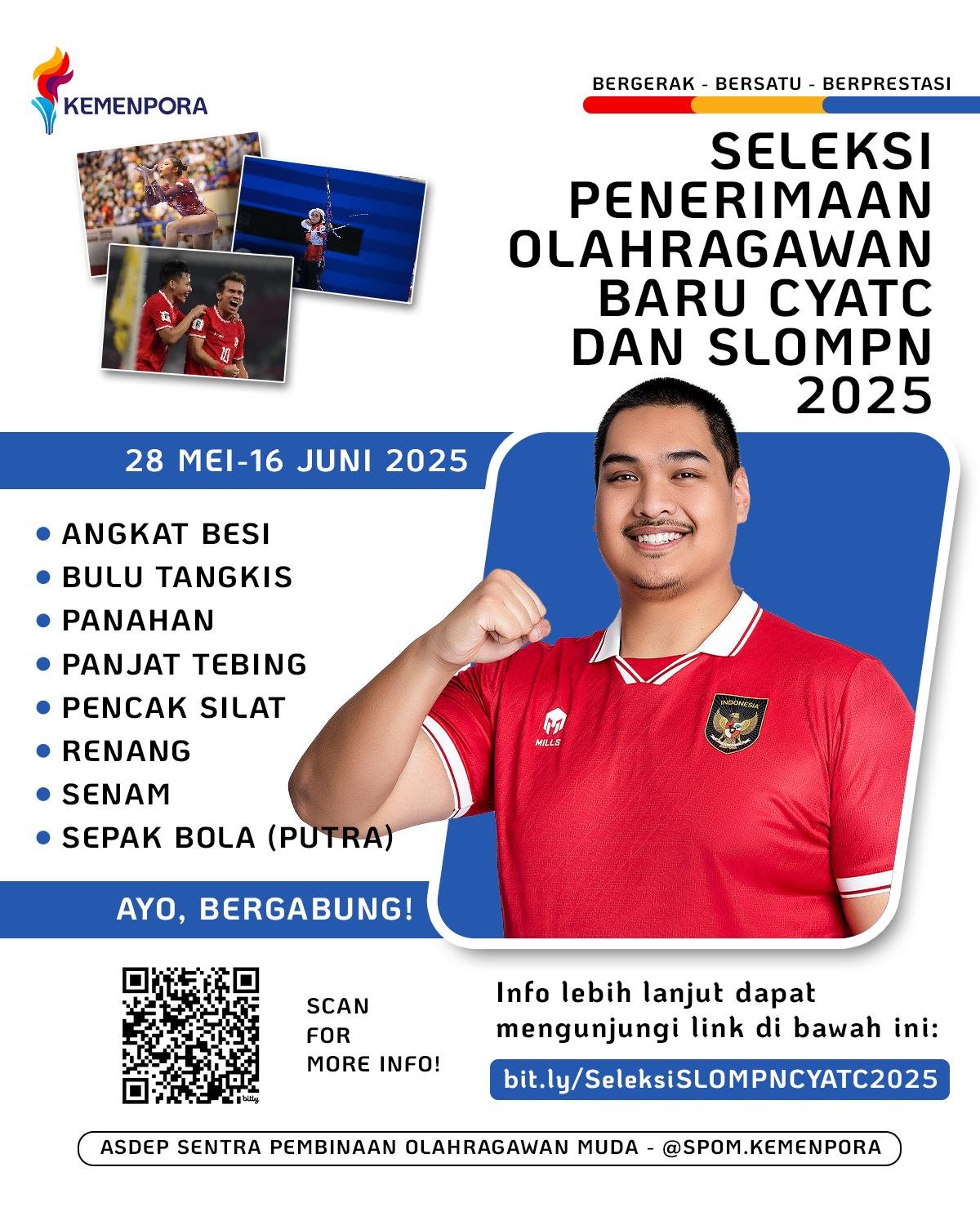 bit.ly/PendaftaranSLOMPN2025 untuk SLOMPN atau bit.ly/PendaftaranCYATC2025 unutk